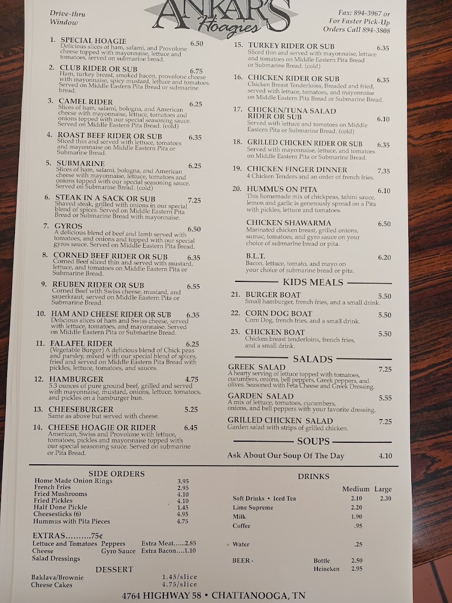 Welcome to Ankar's Hoagies 58, a cherished gem in Chattanooga, TN. With over 30 years of service, this eatery has built a loyal clientele, drawn by its hearty sandwiches and dedicated staff. Although some customers note fluctuations in experience due to the owner's health, the flavors here are undeniable.